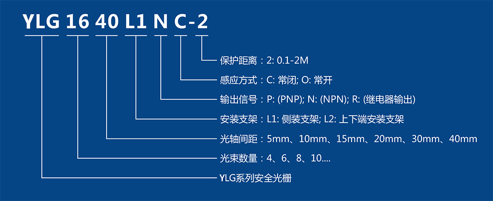 YLG系列安全光栅外形小巧,精度高,具有很强的信号发射和接收能力。其控制原理是发光器接受,形成保护光幕,受光器监控光幕的通断状态,并将光幕的通断信号通过内部电路处理,直接输出低电平(通光时)或高电平(通光时),通过传输线接到PLC或报警电路。实现设备停止或发出安全报警。